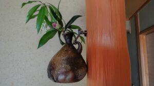 ふと、立ち寄ったギャラリーで、気に入って購入した掛け花さしです。手のひら位の大きさで、立杭の土だと思います。